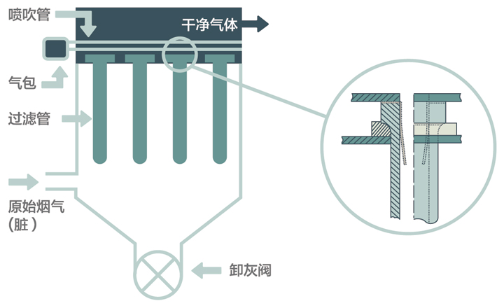 ●極細(xì)的陶瓷纖維交錯形成的細(xì)密多孔結(jié)構(gòu),可以過濾次微米級固體顆粒物,實現(xiàn)高效通氣過濾,粉塵排放可低至2mg;